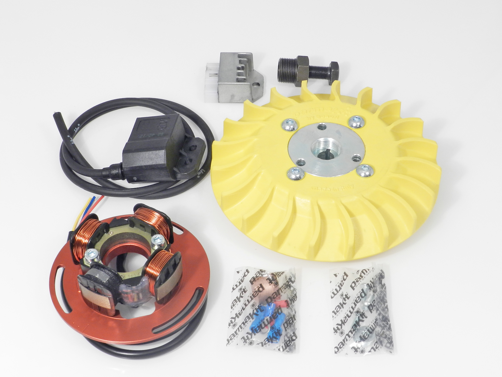Elecronic ignition flywheel fully machined cone 20 Kg 1,500 yellow, Vespa PX125-150-200 – PE200