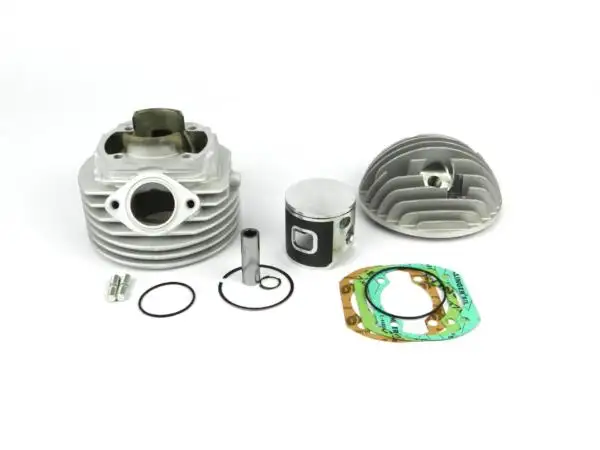 ‘- Cilindro in alluminio d.58 con canna al nikasil – Corsa 51 x biella 97mm – Scarico ellittico – Pistone forgiato mono segmento in acciaio – Testa con foro candela laterale
